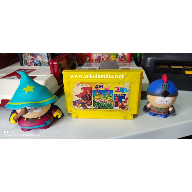 Se vende juego super 3 en 1, casette para la consola Family Computer, el casette trae los siguientes juegos: Contra Force, Doble Dragon 3 y Tortugas Ninja 3. Todos los juegos de excelente calidad, los juegos funcionan perfectamente, en la ciudad de Bogotá se puede entregar ensayado.