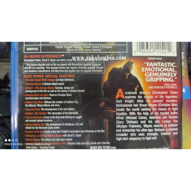 Película del director Christopher Nolan, Batman Begins en buen estado estético, la película reinicia la serie fílmica de Batman, película del año 2005, protagonizada por Christian Bale, Michael Caine, Liam Neeson, Gary Oldman y Morgan Freeman, entre otros grandes actores, formato Blu-ray, idioma inglés y español, subtítulos en español, estuche plástico para guardar el disco, totalmente original, contiene material extra de la película original, fotos reales del producto, se puede recoger en la oficina o enviar a domicilio.