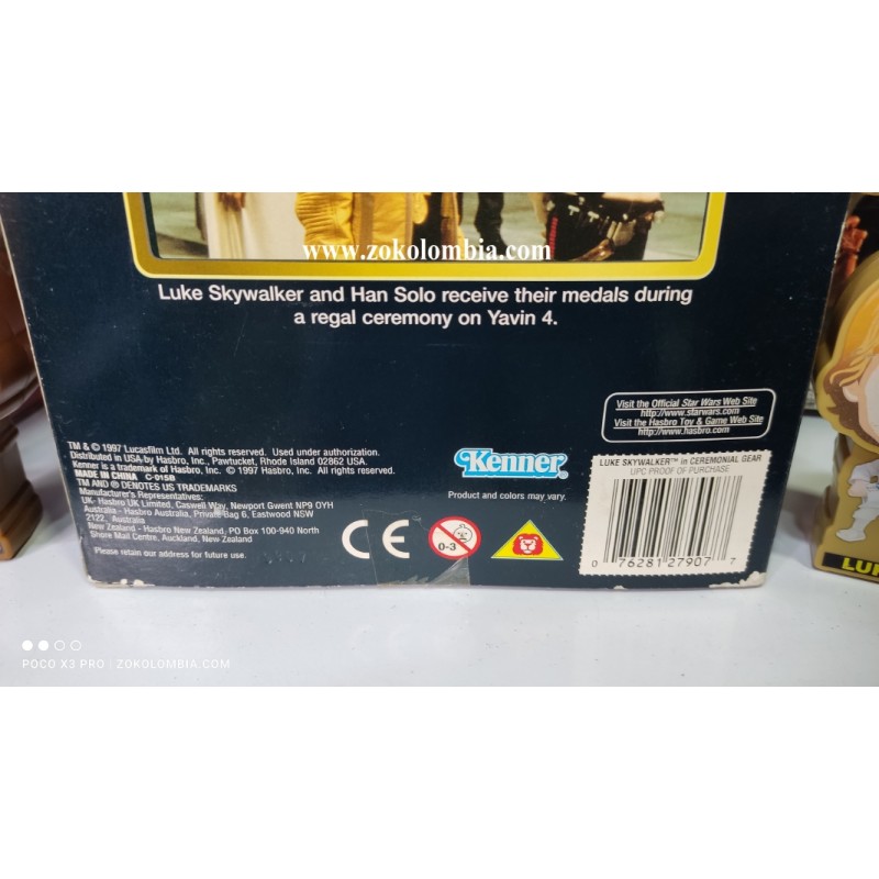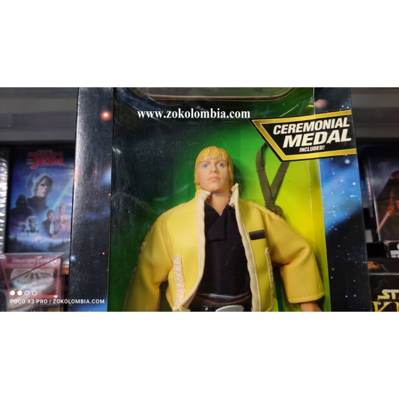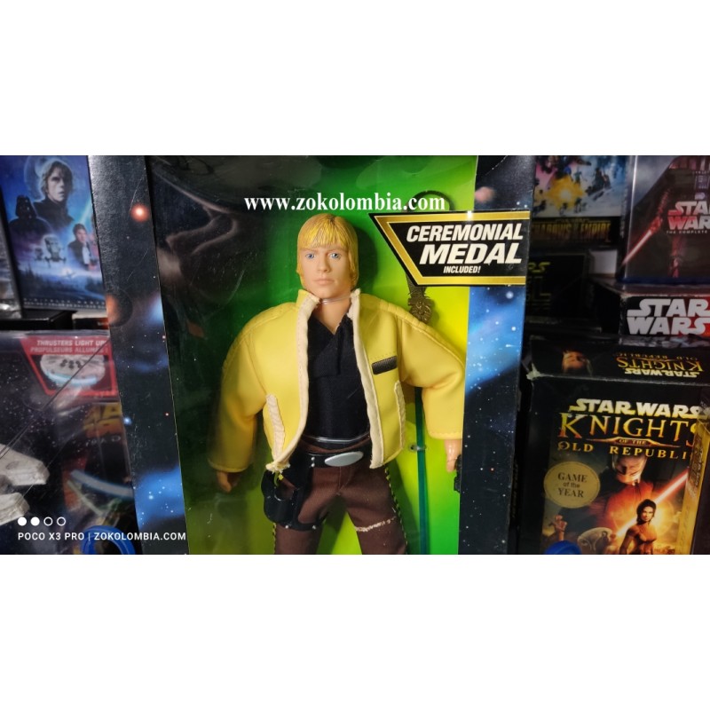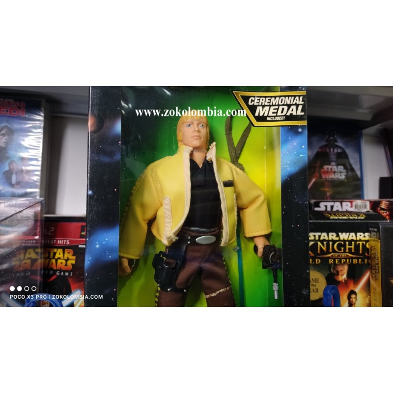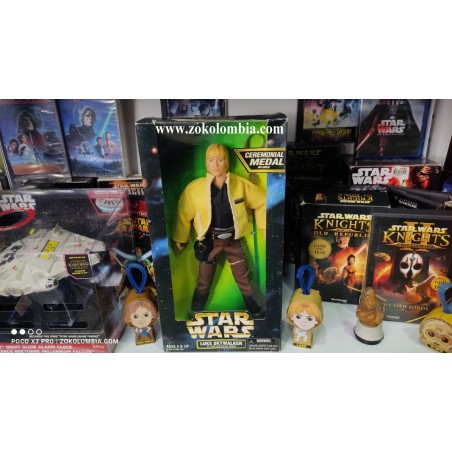 Figura totalmente original marca Kenner, totalmente nueva y sellada, figura completa con todos sus accesorios. Personaje de las películas de Star Wars, personaje Luke Skywalker protagonista de la película, figura de 30 centímetros, Luke Skywalker In Ceremonial Gear, material plastico y tela, año 1997, caja con ventana, se entrega con la medalla de la ceremonia, arma y Lightsaber, ropa hecha en tela. Figura con altos detalles estéticos, especial para coleccionistas, se puede recoger en la oficina o enviar a domicilio.