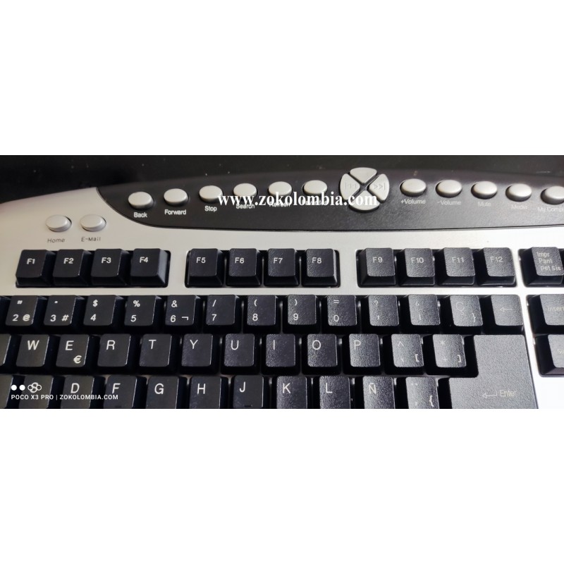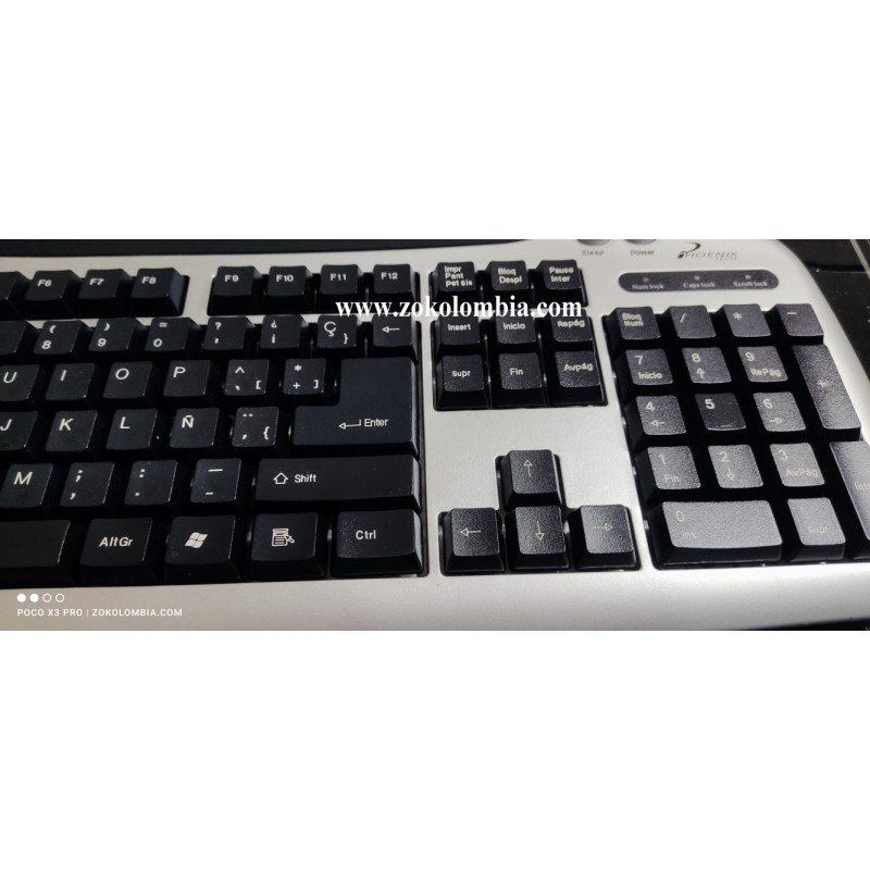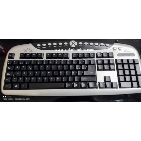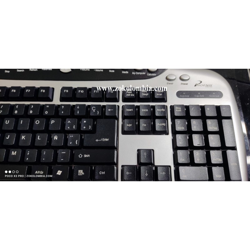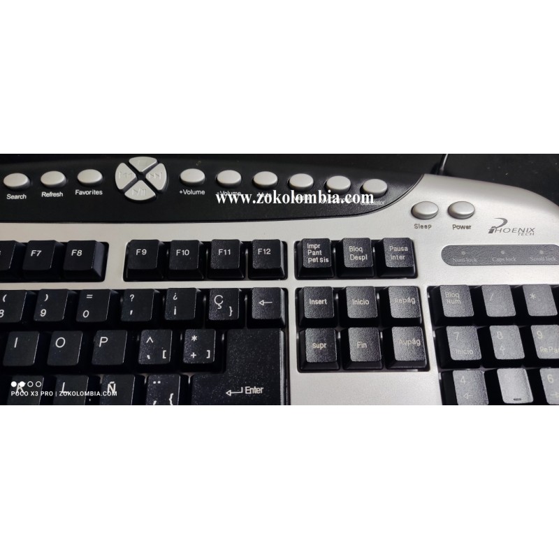 Teclado multimedia marca Phoenix, usado, totalmente funcional, teclas estándar, letra Ñ, botones de acceso rápido multimedia, teclado numérico, alámbrico o con cable, puerto PS2, sirve para cualquier Windows y Linux. En la ciudad de Bogotá se puede entregar ensayado, fotos reales del producto, se puede recoger en la oficina o enviar a domicilio.