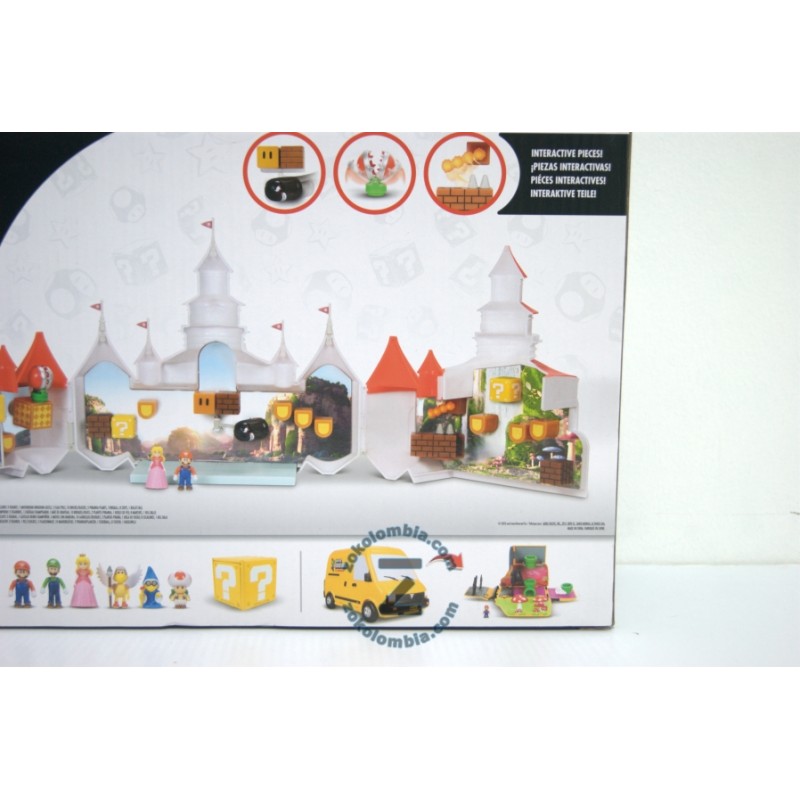 Piezas Interactivas: El castillo cuenta con piezas interactivas que se pueden mover y posicionar para crear diferentes escenarios de juego. Estas incluyen bloques de pregunta, plantas Piraña, y otros elementos clásicos de la saga de Super Mario.