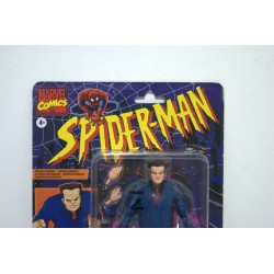 El empaque tiene un diseño vibrante con arte clásico de Spider-Man y una ventana transparente que muestra la figura.