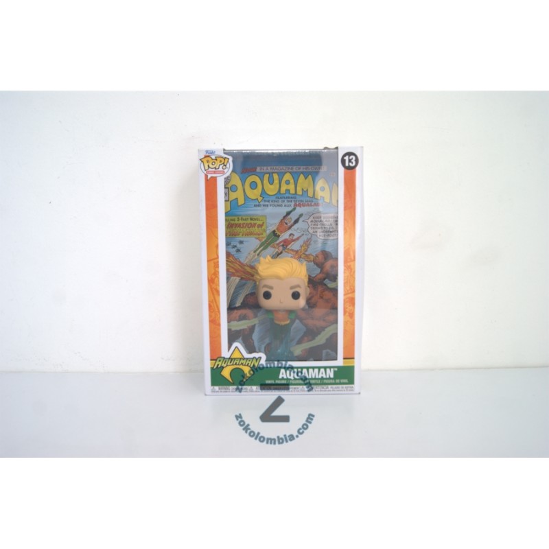 Contenido: Incluye una figura de vinilo de Aquaman en su clásica pose de acción, con la portada del cómic Aquaman #1 en el fondo.