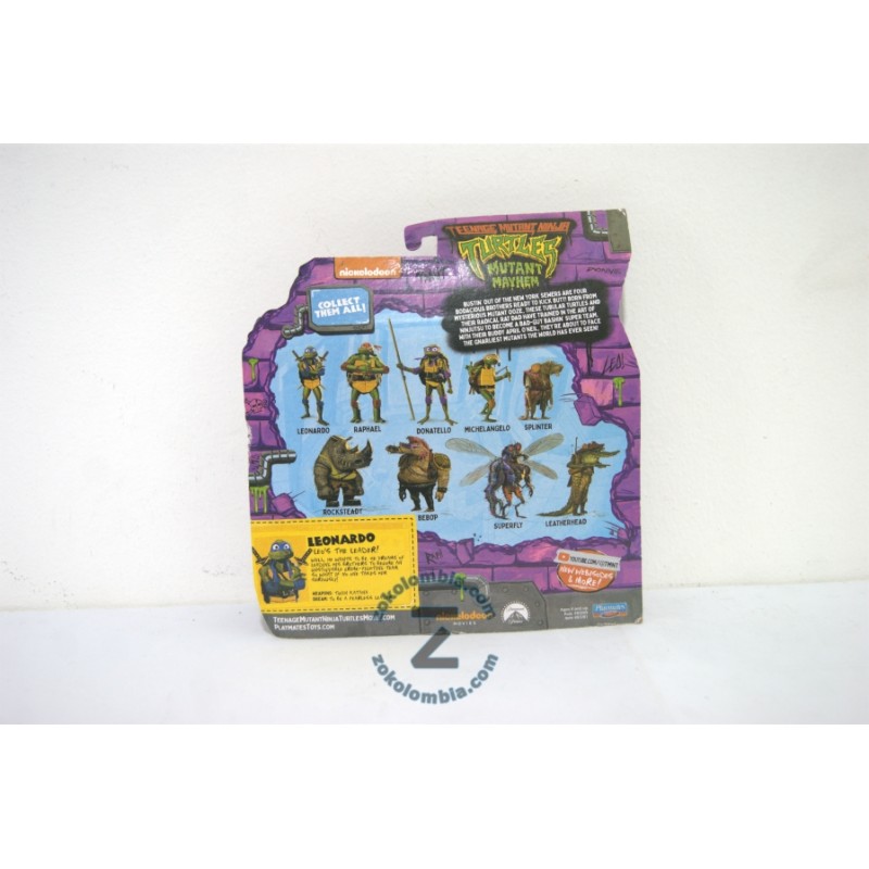 Características adicionales: Colecciona a todos los personajes de la película, que incluyen a Raphael, Donatello, Michelangelo, Splinter, y los villanos Rocksteady, Bebop, Superfly y Leatherhead. ¡Completa tu colección con Leonardo al frente del equipo!