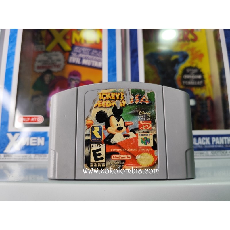 Cartucho original de Nintendo 64 Mickey's Speedway USA. Embárcate en una emocionante aventura de carreras junto a Mickey y sus amigos en este divertido juego lanzado por Disney Interactive. Explora distintos escenarios de los Estados Unidos mientras compites en carreras llenas de acción y desafíos. El cartucho muestra signos de uso en la etiqueta, pero el juego ha sido probado y está en funcionamiento óptimo, como se muestra en las imágenes. Ideal para amantes de los clásicos de Disney en Nintendo. En la ciudad de Bogotá se puede entregar ensayado, fotos reales del producto, se puede recoger en la oficina o enviar a domicilio.