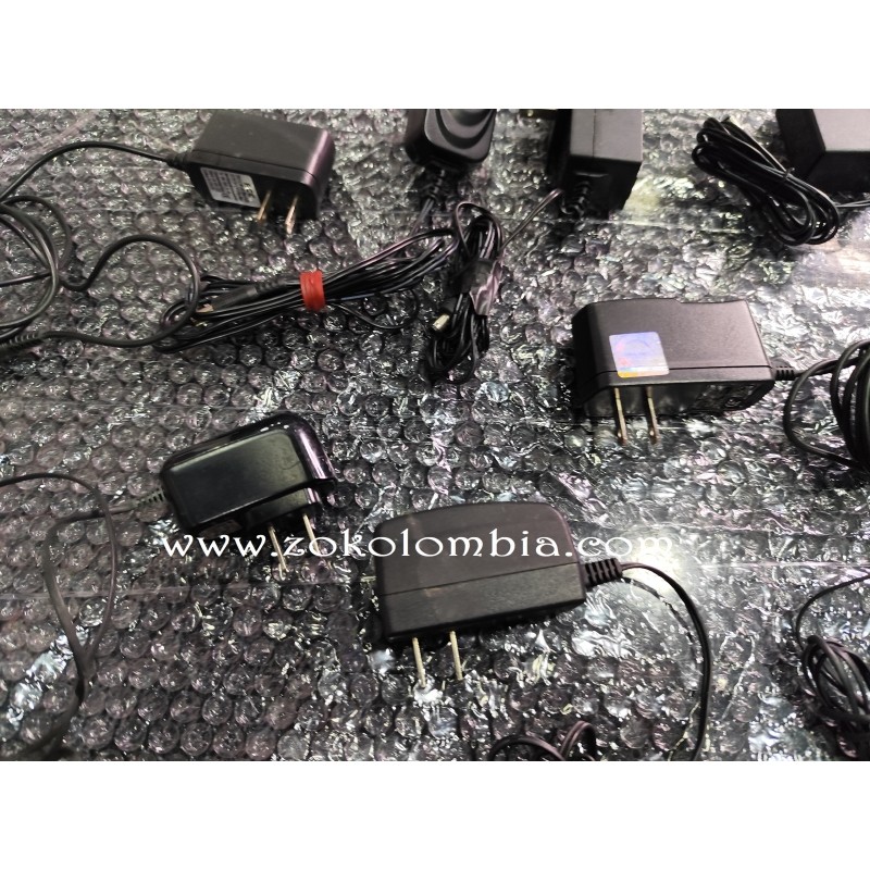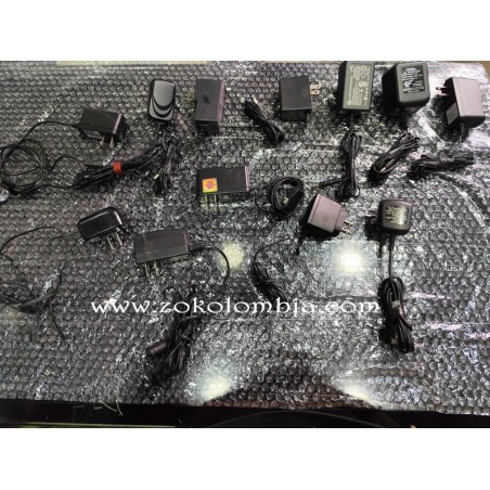 Adaptadores de corriente de diferentes marcas y especificaciones (consultar etiquetas en las fotos para ver voltajes y amperajes específicos).
