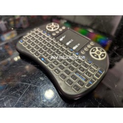 Teclado inalámbrico multifuncional con panel táctil integrado.