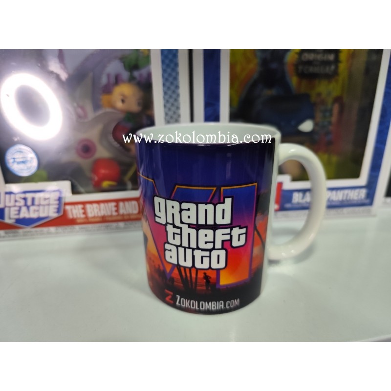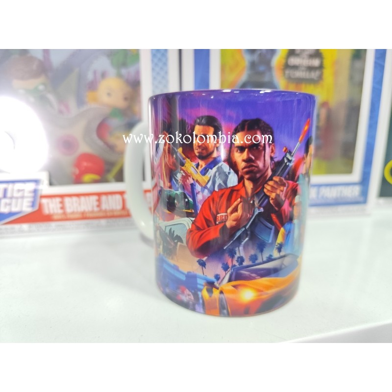 Revive la adrenalina de la saga más icónica de los videojuegos con esta taza temática de Grand Theft Auto (GTA). Perfecta para fanáticos de la acción, el caos y las emocionantes historias de este universo virtual. Su diseño de alta calidad resalta los colores vibrantes y detalles característicos de la franquicia.
