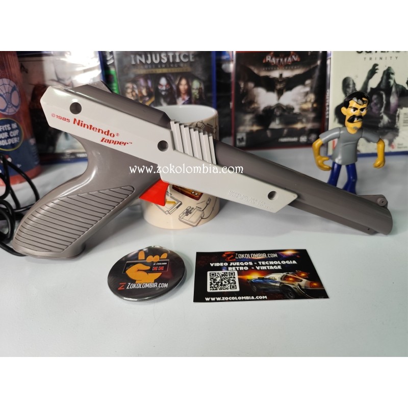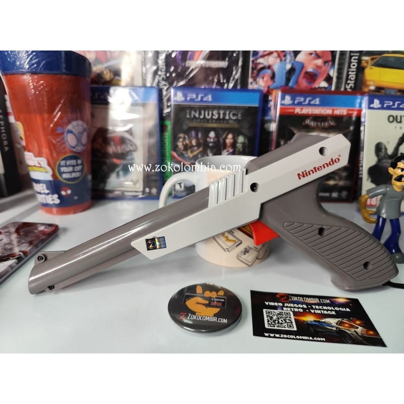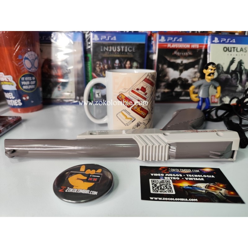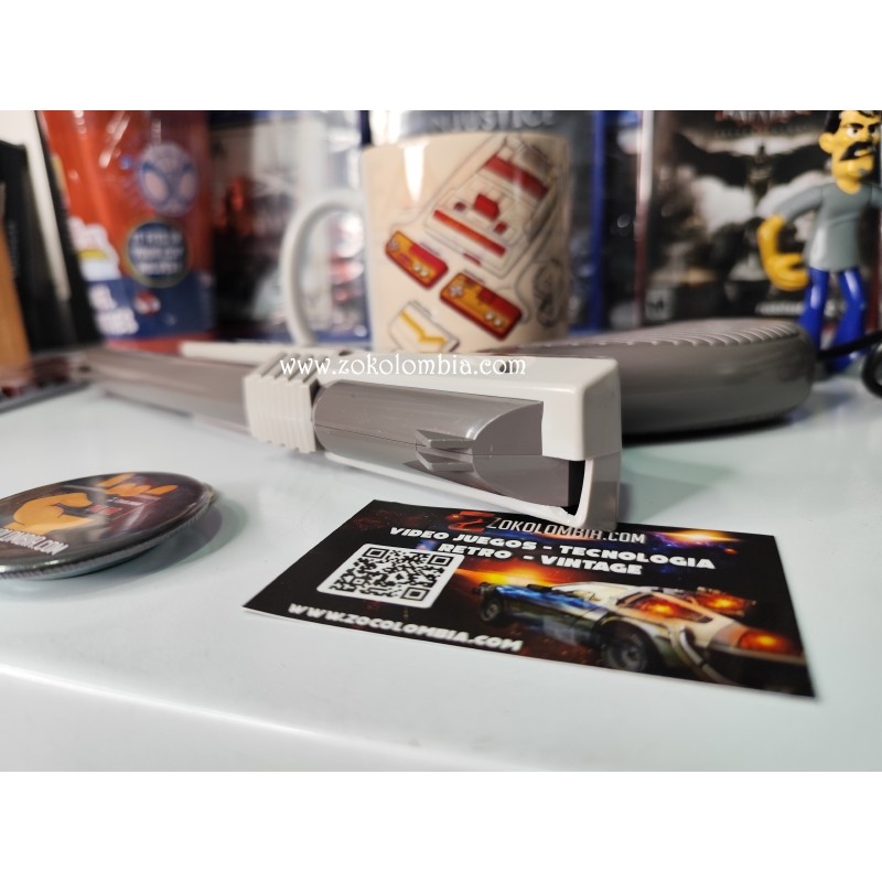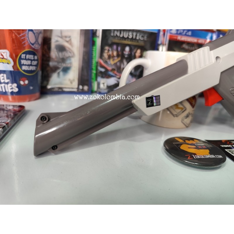 La Nintendo Zapper fue uno de los accesorios más icónicos de la NES, diseñado para juegos legendarios como Duck Hunt, Hogan’s Alley y muchos más. Su diseño retro y nostálgico la convierte en una pieza obligatoria para coleccionistas y amantes del videojuego clásico.