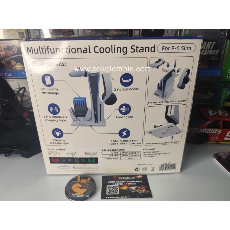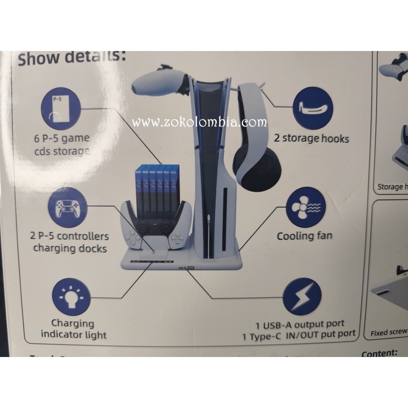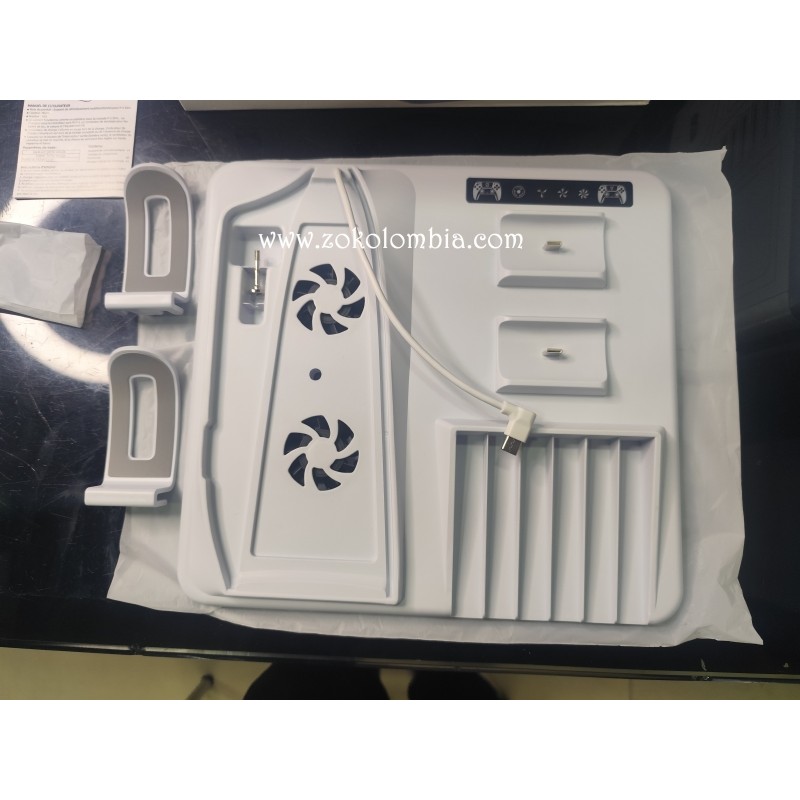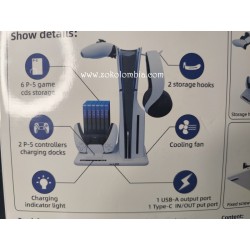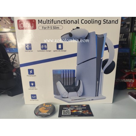 Organiza, protege y mejora el rendimiento de tu consola PlayStation 5 Slim con este soporte multifuncional marca iPlay, especialmente diseñado para brindar soluciones completas en un solo accesorio. Este stand vertical incorpora ventiladores de refrigeración, cargadores dobles para mandos, almacenamiento para juegos, puertos de carga adicionales y ganchos laterales para auriculares u otros accesorios.