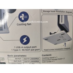– Incluye: 1 base refrigerante, 2 ganchos de almacenamiento y tornillo para fijación
