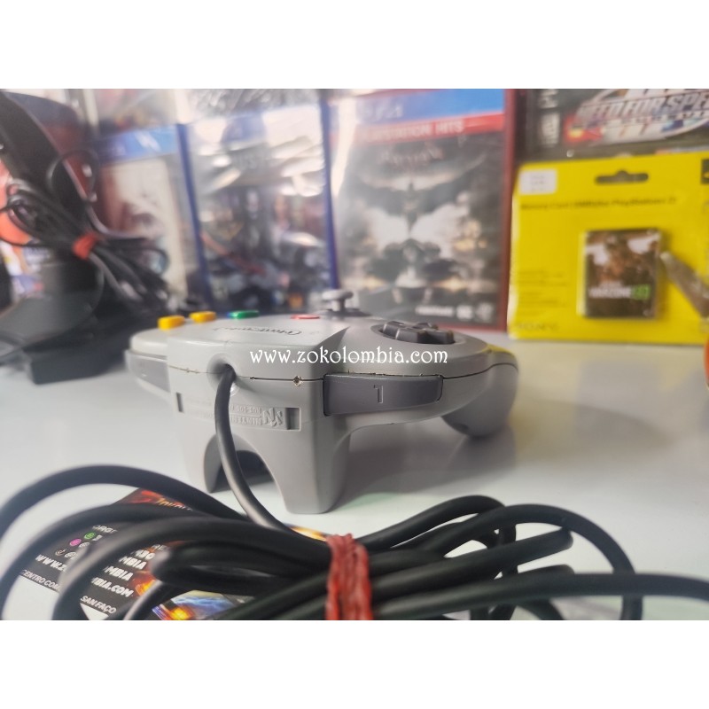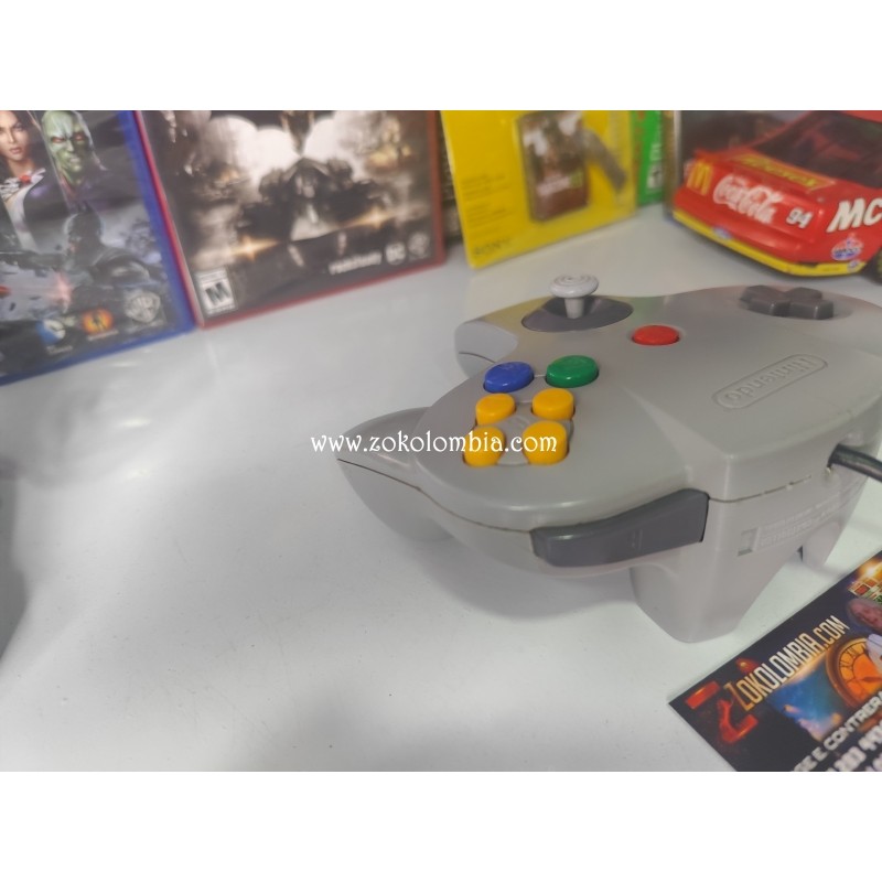 Control original Nintendo 64 (N64) en color gris, una pieza clásica imprescindible para los amantes de los videojuegos retro. Este mando ofrece una experiencia de juego auténtica y precisa, diseñado con el icónico formato de tres agarraderas y disposición de botones que marcó toda una generación. Cuenta con botón analógico central, cruceta direccional, botones A y B, botones C (amarillos), botón Start y gatillo Z en la parte posterior. Su diseño ergonómico y su compatibilidad con títulos legendarios como Super Mario 64, GoldenEye 007, Mario Kart 64 o The Legend of Zelda: Ocarina of Time lo convierten en una excelente opción tanto para jugadores como coleccionistas.