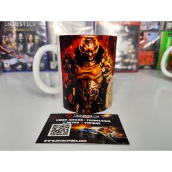 Ideal para café, té o cualquier bebida de batalla, este mug combina estilo gamer con funcionalidad. Su impresión a todo color muestra al protagonista con armadura de combate en un entorno apocalíptico, acompañado por el logotipo de DOOM en un acabado brillante que resalta en cada ángulo.