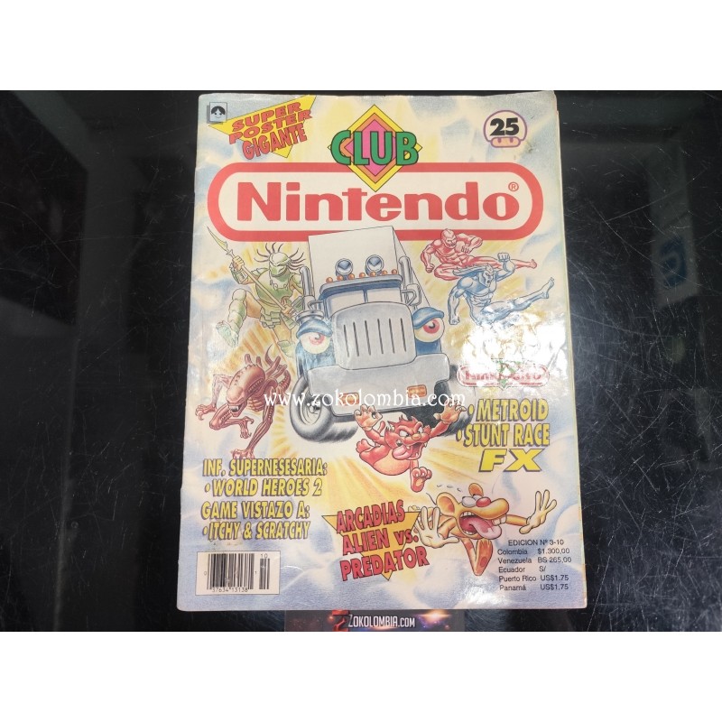 ¡Sumérgete en los 90 con esta espectacular edición de colección! La revista Club Nintendo N.º 25 es una publicación original de época, rica en contenido, ilustraciones y análisis de videojuegos inolvidables del catálogo de NES y Super Nintendo. Con una portada llena de acción que reúne personajes de juegos como Alien vs Predator, World Heroes 2 y Stunt Race FX, es una joya visual e histórica para cualquier amante de los videojuegos clásicos.