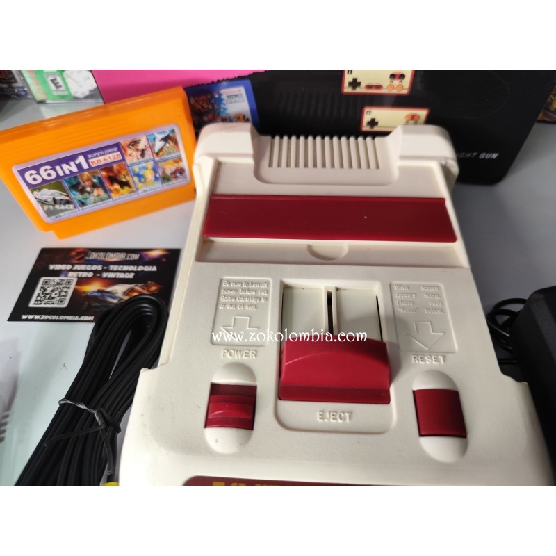 ¡Revive la nostalgia de los videojuegos clásicos con esta consola "Family Computer de los años 80s"!En caja, inspirada en los sistemas de videojuegos de los años 80 y 90, esta consola es ideal para quienes desean revivir las emociones de su infancia o compartirlas con las nuevas generaciones. La consola NO ES NOAC, consola con integrados y chips de los años 80s, consola en buen estado estetico, la consola funciona bien, puerto para pistola, puede jugar con casettes de Famicom y Family. Sonido funcionando bien, imagen funcionando bien, botones funcionando bien.