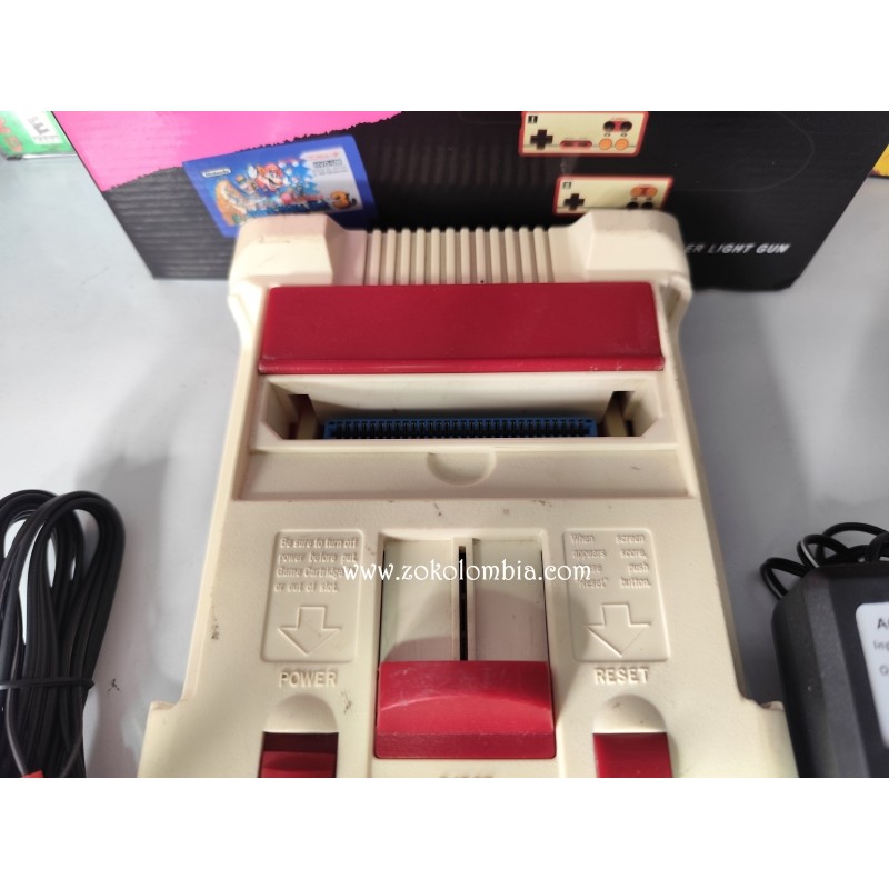 ¡Revive la nostalgia de los videojuegos clásicos con esta consola "Family Computer de los años 80s"!En caja, inspirada en los sistemas de videojuegos de los años 80 y 90, esta consola es ideal para quienes desean revivir las emociones de su infancia o compartirlas con las nuevas generaciones. La consola NO ES NOAC, consola con integrados y chips de los años 80s, consola en buen estado estetico, la consola funciona bien, puerto para pistola, puede jugar con casettes de Famicom y Family. Sonido funcionando bien, imagen funcionando bien, botones funcionando bien.