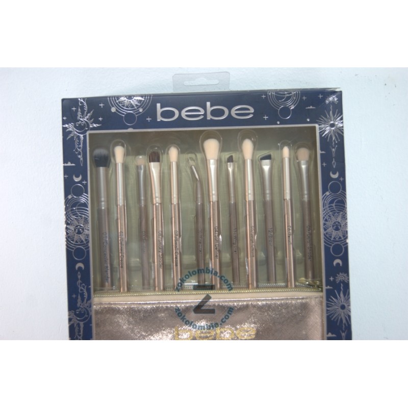 ¡Logra maquillajes de ojos perfectos con este elegante set de brochas de la reconocida marca Bebe! Diseñado para ofrecer la máxima precisión y versatilidad, incluye 12 brochas especializadas y un práctico estuche metálico dorado para mantenerlas organizadas y protegidas.