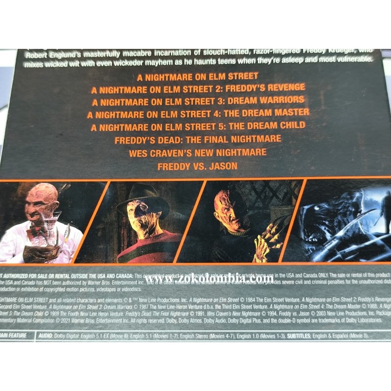 Este box set reúne las 8 películas originales de Freddy Krueger, el icónico villano creado por Wes Craven, que con su guante de cuchillas acecha a los adolescentes en sus sueños desde 1984. Una saga que marcó un antes y un después en el cine de terror y convirtió a Freddy en una de las leyendas más temidas del género.