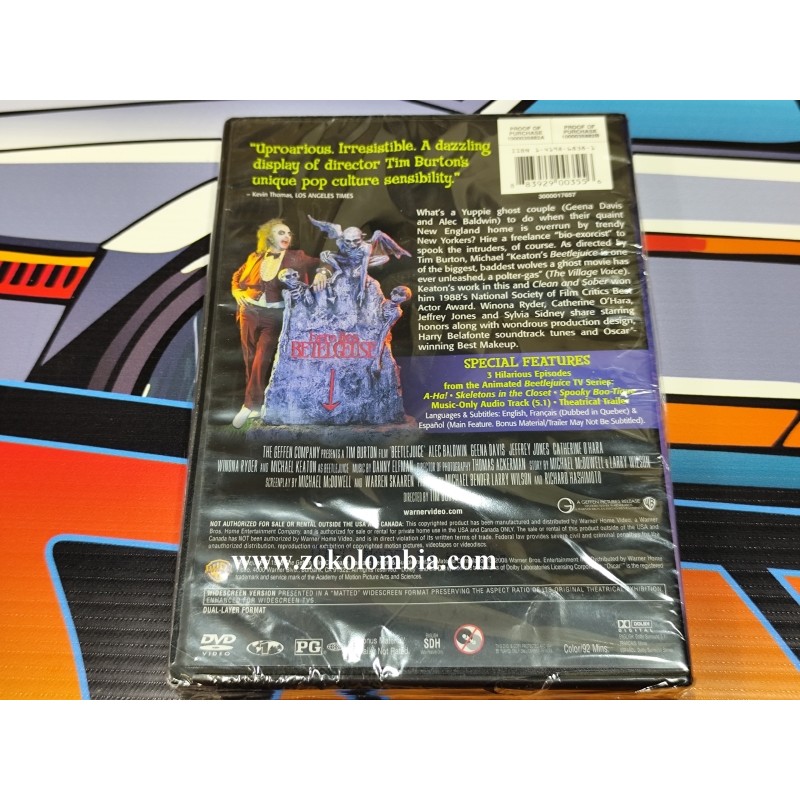Beetlejuice (1988), protagonizada por Michael Keaton, Winona Ryder, Alec Baldwin y Geena Davis, es una de las comedias fantásticas más icónicas del cine de los 80. Esta edición 20th Anniversary Deluxe Edition en DVD incluye contenido especial y extras imperdibles para los fanáticos.