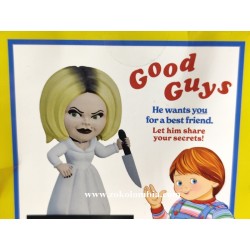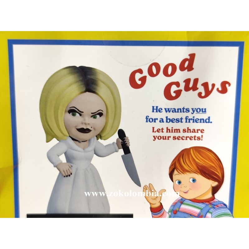 ¡Atrévete a invocar a Tiffany esta temporada! Una figura Good Guys que combina dulzura, locura y terror en un solo empaque, ¡ideal para tu colección de Halloween!