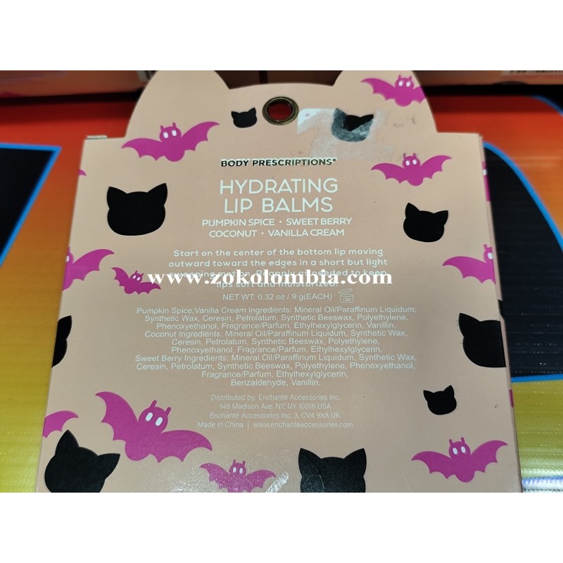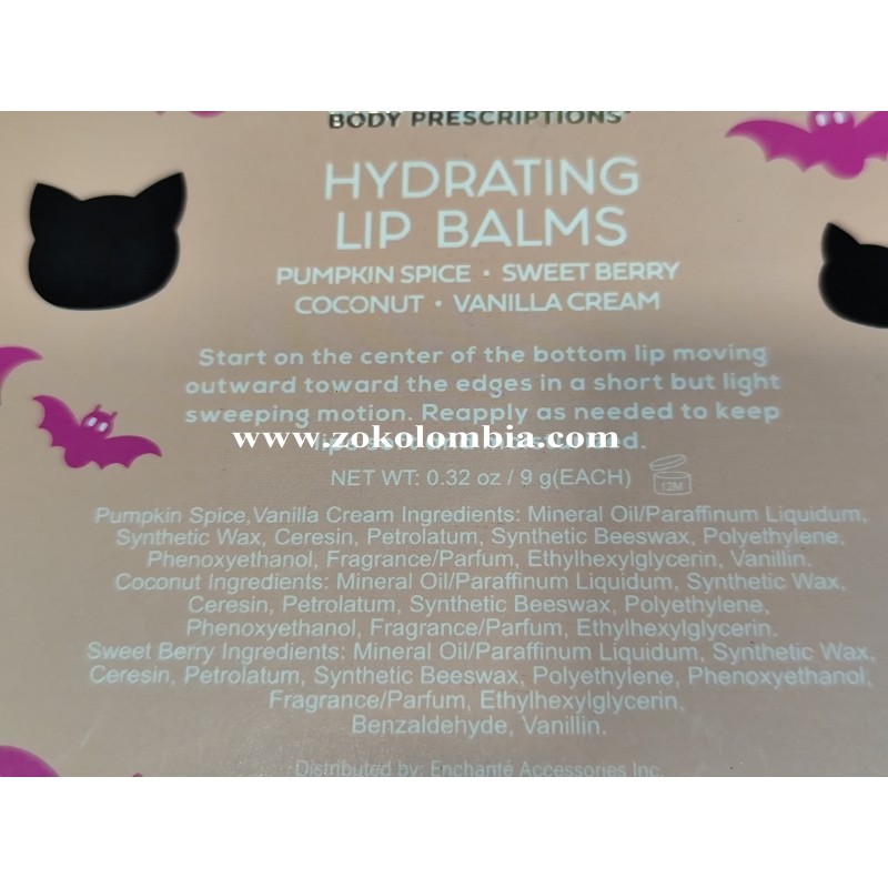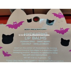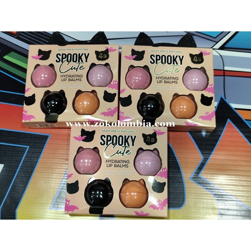 Dale un toque espeluznantemente adorable a tu rutina de cuidado personal con este set de 4 bálsamos labiales hidratantes de la línea Body Prescriptions – Spooky Cute. Su presentación en envases con orejitas de gato y diseño temático de Halloween los convierte en el accesorio perfecto para la temporada.