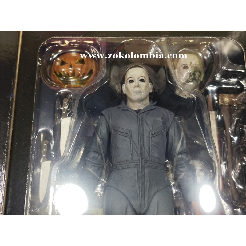 La figura incluye múltiples cabezas intercambiables, armas clásicas y hasta una calabaza de Halloween, ideal para coleccionistas que buscan elevar su vitrina de horror al máximo nivel.
