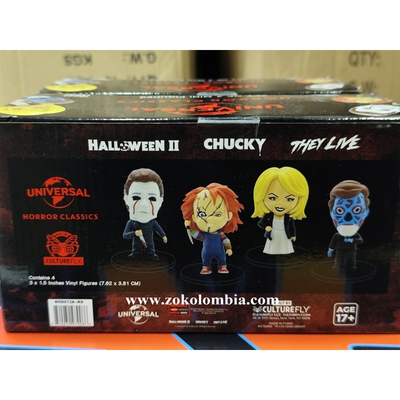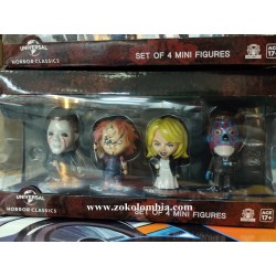 Incluye: 4 mini figuras (Michael Myers, Chucky, Tiffany y Alien de They Live).