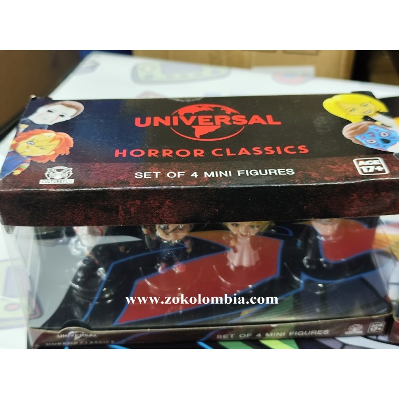 Cada figura mide aproximadamente 3 pulgadas (7.6 cm) y está diseñada con gran detalle para coleccionistas y fanáticos del terror. Producidas por CultureFly con licencia oficial de Universal Studios, estas mini figuras son ideales para darle un aire espeluznante a tu vitrina o decoración de Halloween.