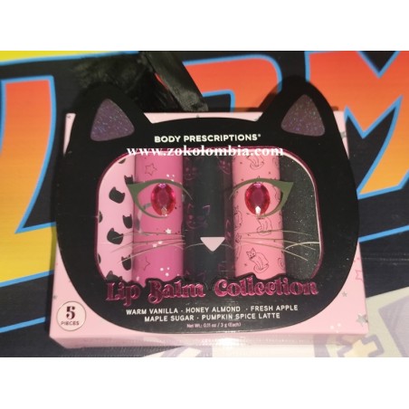 Dale un toque mágico y espeluznante a tu rutina de cuidado con esta colección de bálsamos labiales Body Prescriptions, presentada en un empaque con diseño de gatito negro, perfecto para la temporada de Halloween.