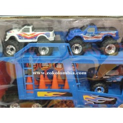 ¡La acción de los Monster Trucks llega a tu colección! Este espectacular set incluye una tractomula transportadora de autos con rampa plegable y varios Monster Trucks a escala, diseñados para horas de diversión extrema. Ideal para niños que aman las competencias y coleccionistas que disfrutan los detalles realistas.