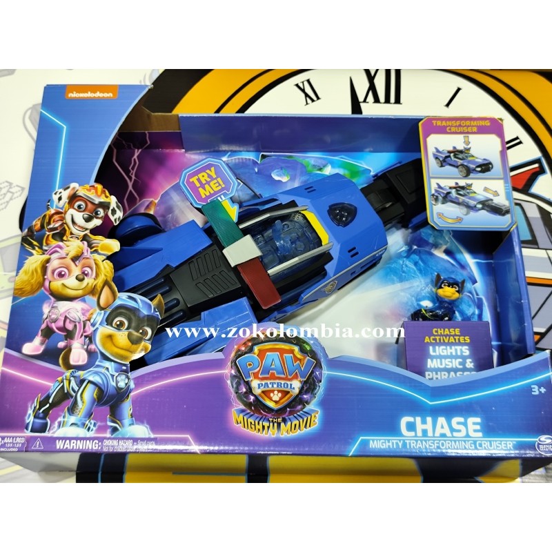 Este increíble vehículo de Chase Mighty Transforming Cruiser se transforma con un solo movimiento, incluye luces, música, frases y la clásica canción de Paw Patrol. ¡Diversión garantizada para los más pequeños y coleccionistas de la serie!