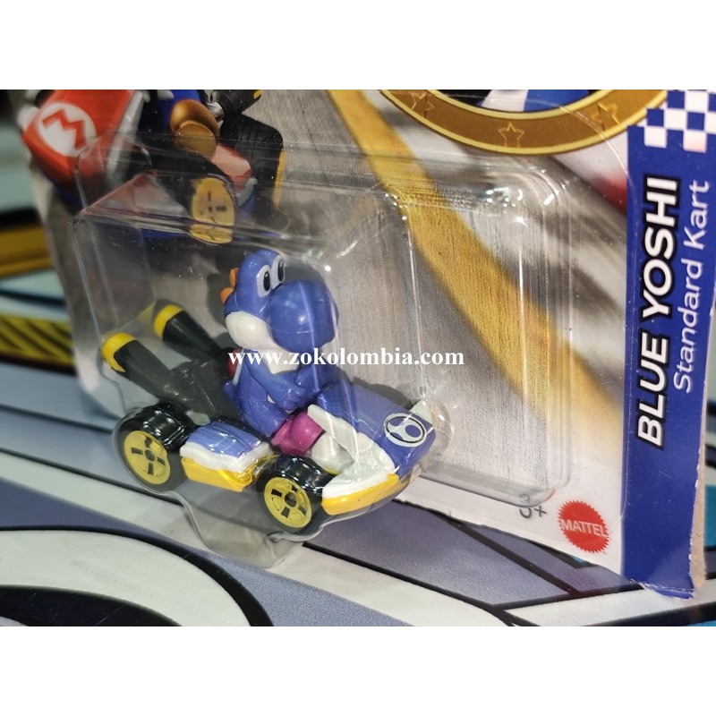 ¡Lánzate a la pista con el carisma y velocidad del Blue Yoshi en su Standard Kart de la colección Hot Wheels Mario Kart!