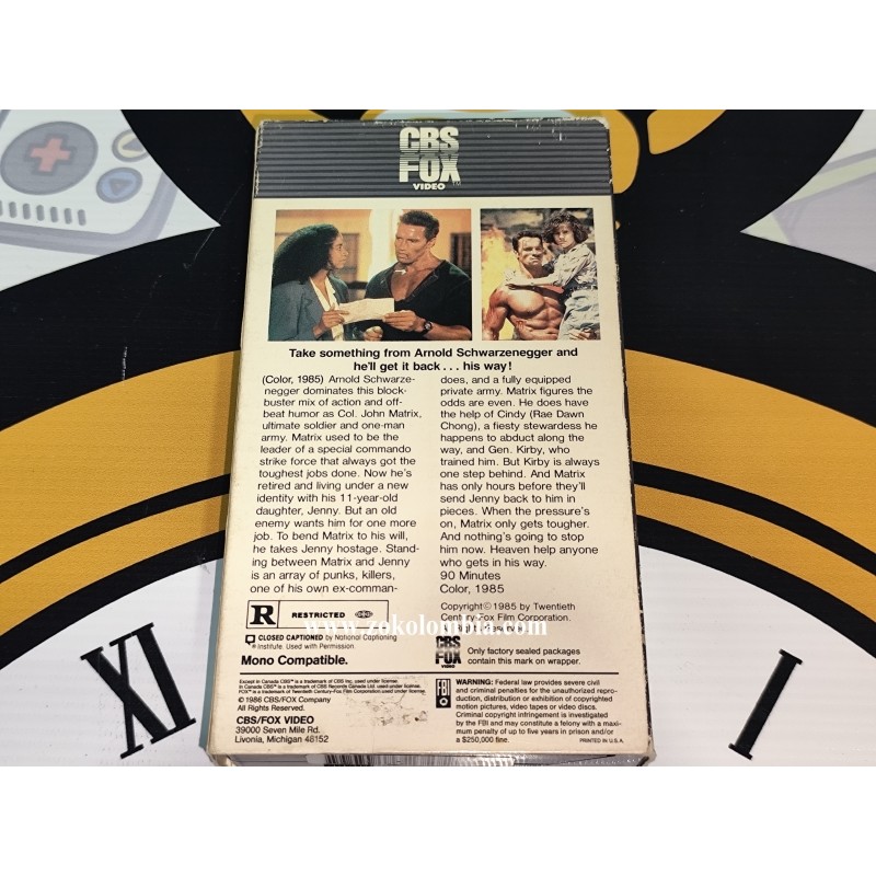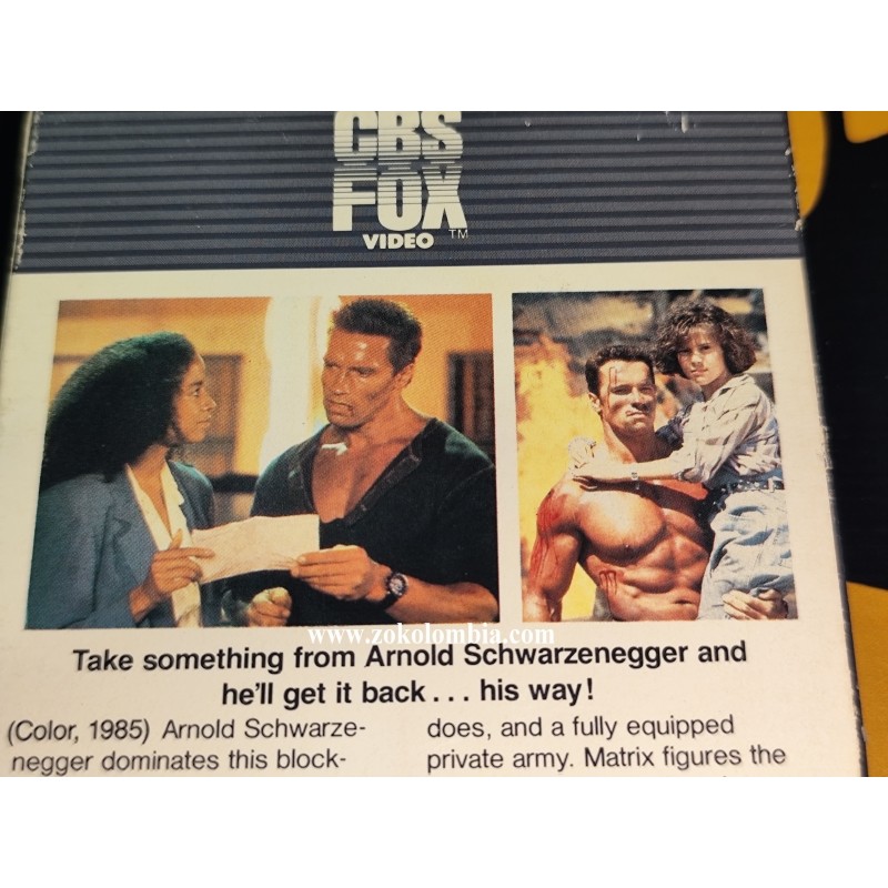 Distribuida por CBS/FOX Video, esta edición conserva su caja original con arte clásico de colección, mostrando a Schwarzenegger armado y listo para la batalla. ¡Un imprescindible para fanáticos del cine de acción retro!