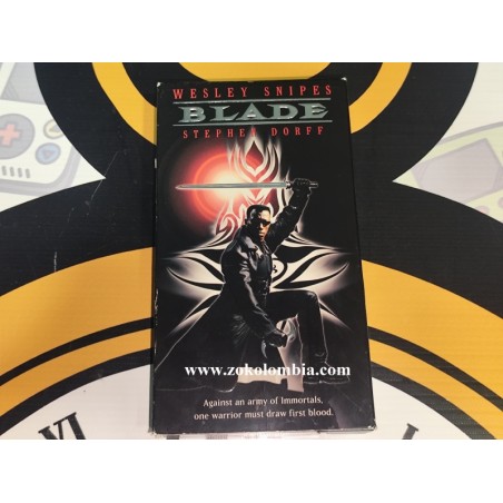 ¡Un clásico moderno del cine de acción y vampiros! Esta es la edición original en VHS de Blade (1998), protagonizada por Wesley Snipes en uno de los papeles más icónicos de su carrera.