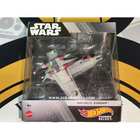 Despega hacia la galaxia con esta increíble Republic Gunship de la colección Hot Wheels Starships Select, fabricada por Mattel bajo licencia oficial de Star Wars.