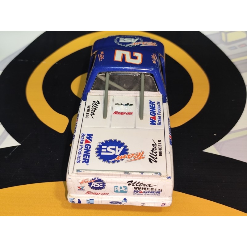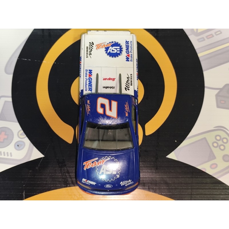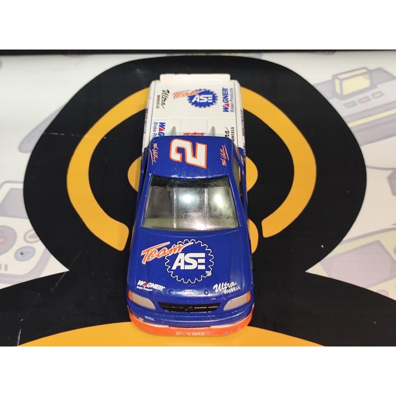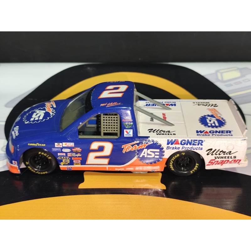 ¡Una joya para los fanáticos del automovilismo americano! Esta camioneta NASCAR Ford F-150 #2 Team ASE, pilotada por Mike Wallace, es una pieza coleccionable que representa la potencia y el espíritu competitivo de la serie Craftsman Truck Series. Su diseño en azul y blanco con logos de Team ASE, Wagner Brake Products, Snap-on y Ultra Wheels evoca la época dorada del automovilismo NASCAR.
