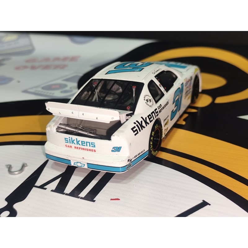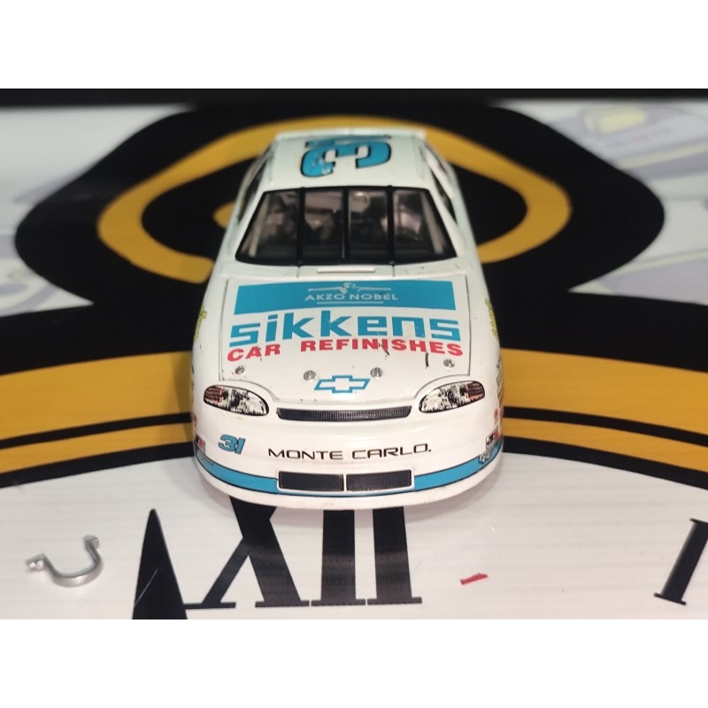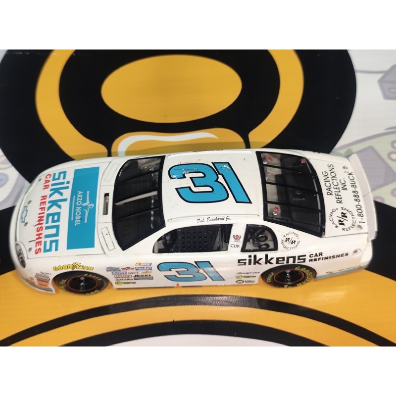 El auto #31 Sikkens representa la precisión y el rendimiento de las máquinas patrocinadas por Akzo Nobel – Sikkens Car Refinishes, dentro del legado de Dale Earnhardt Incorporated (DEI). Este modelo reproduce con gran fidelidad los acabados del vehículo original que compitió en la serie NASCAR Busch, destacando su aerodinámica, logotipos auténticos y estructura sólida, convirtiéndolo en una joya imprescindible para coleccionistas.