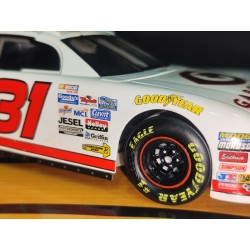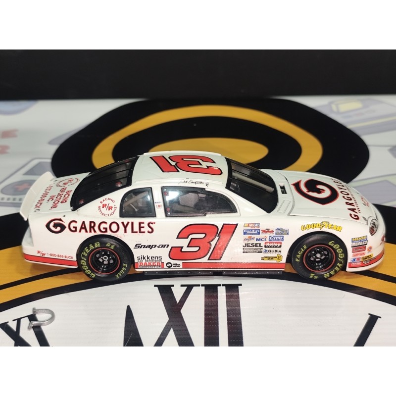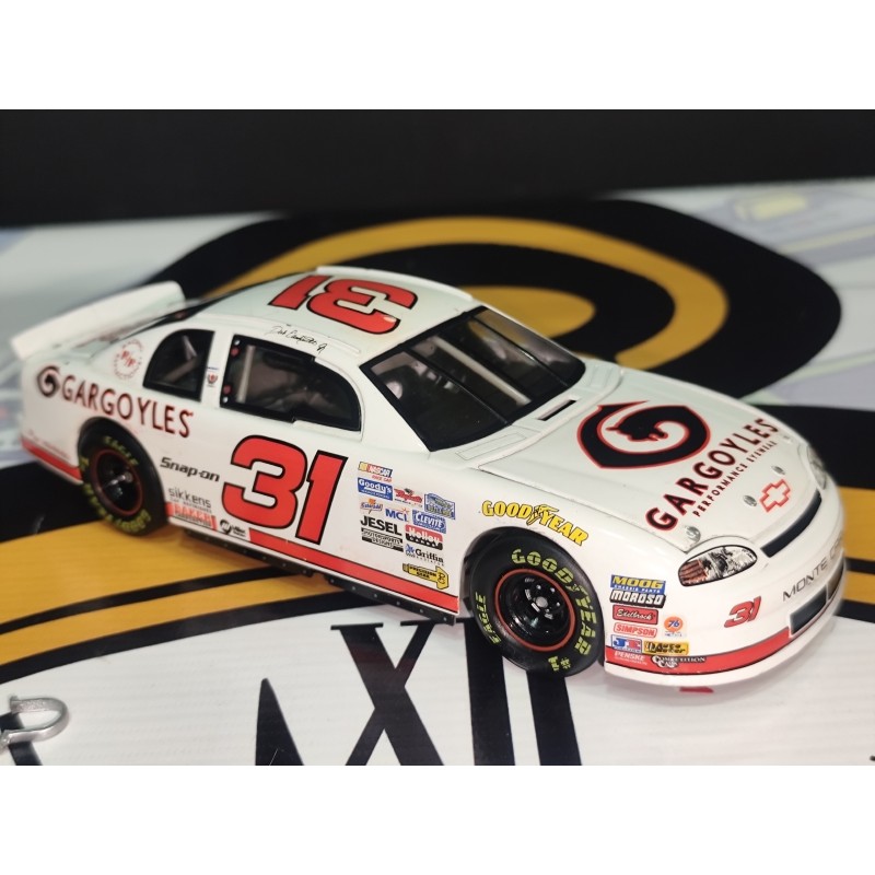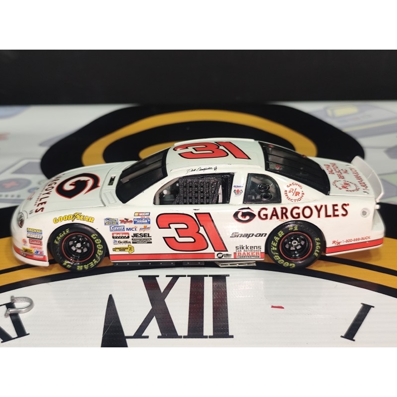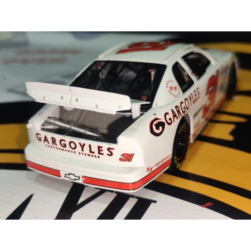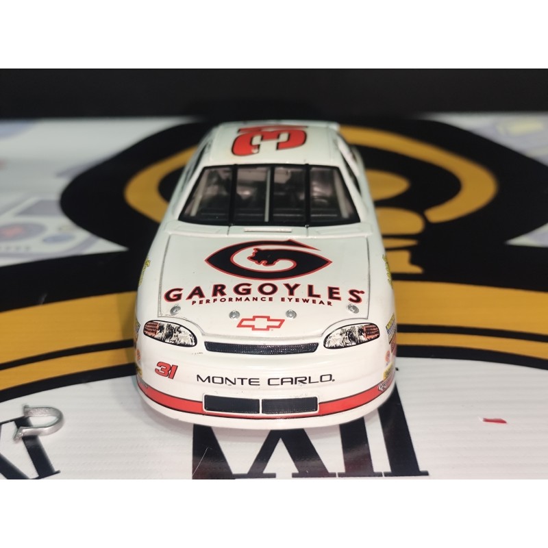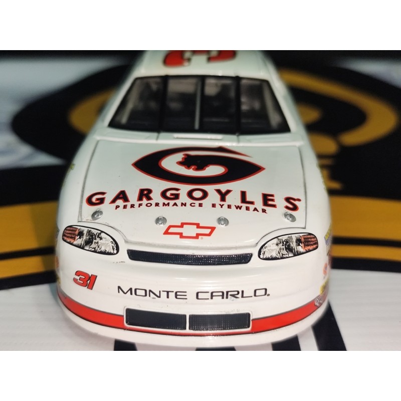 El #31 Gargoyles Chevrolet Monte Carlo representa una de las primeras etapas de la carrera de Dale Earnhardt Jr., cuando comenzó a forjar su nombre dentro del competitivo mundo de NASCAR. Este modelo recrea con gran fidelidad los detalles del auto original —desde la tipografía del número hasta los logotipos de patrocinadores— y es una pieza muy buscada entre coleccionistas por su valor histórico y estético.