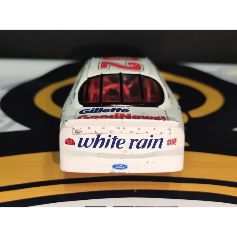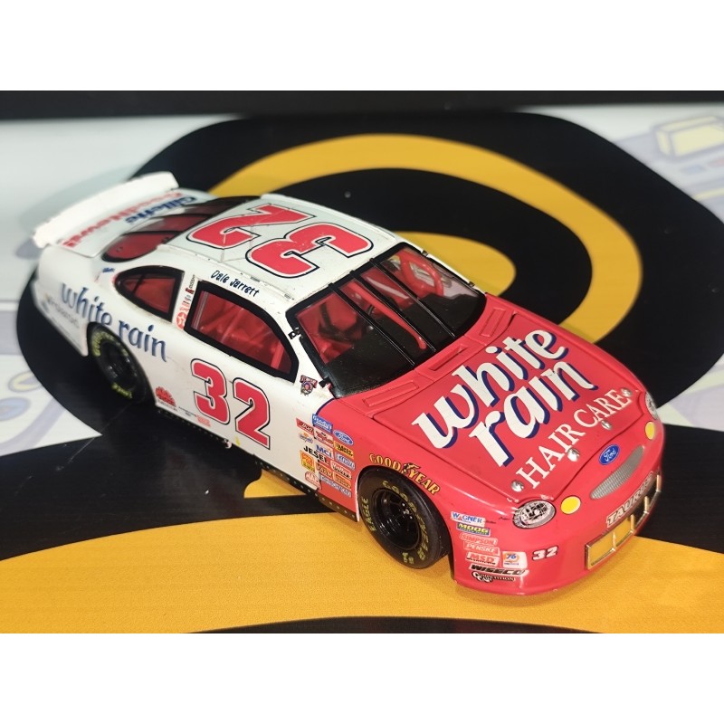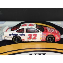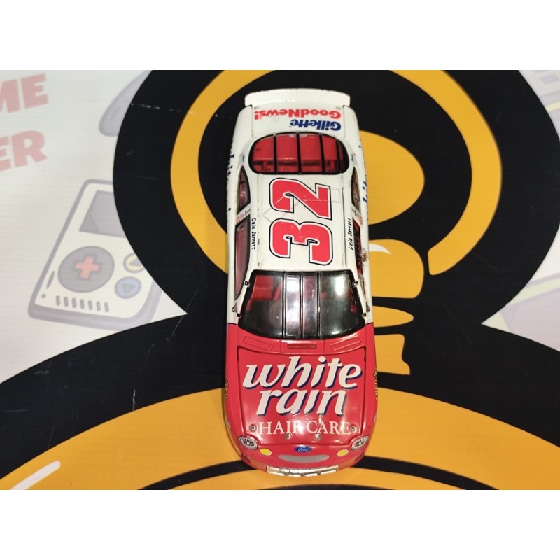 ¡Una auténtica pieza de historia NASCAR! Este Ford Taurus #32 White Rain Hair Care, conducido por el legendario Dale Jarrett, es una réplica coleccionable de alta calidad que resalta por su diseño clásico en blanco y rojo, fiel al vehículo original que representó al equipo White Rain Racing. Su acabado detallado y sus logotipos auténticos lo convierten en una joya para fanáticos del automovilismo americano.