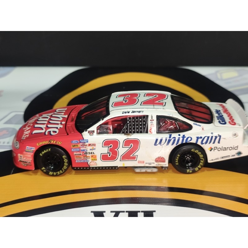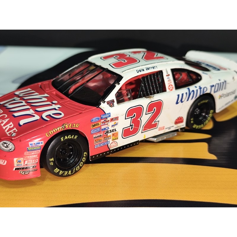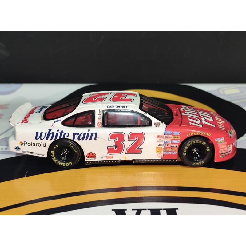El #32 White Rain formó parte de la carrera profesional de Dale Jarrett, uno de los pilotos más emblemáticos de la NASCAR. Con su distintiva combinación de colores y patrocinadores icónicos como White Rain, Polaroid y Gillette, este modelo representa la elegancia y competitividad de la era dorada de las carreras de stock cars. Una pieza ideal para coleccionistas que buscan autenticidad y nostalgia.