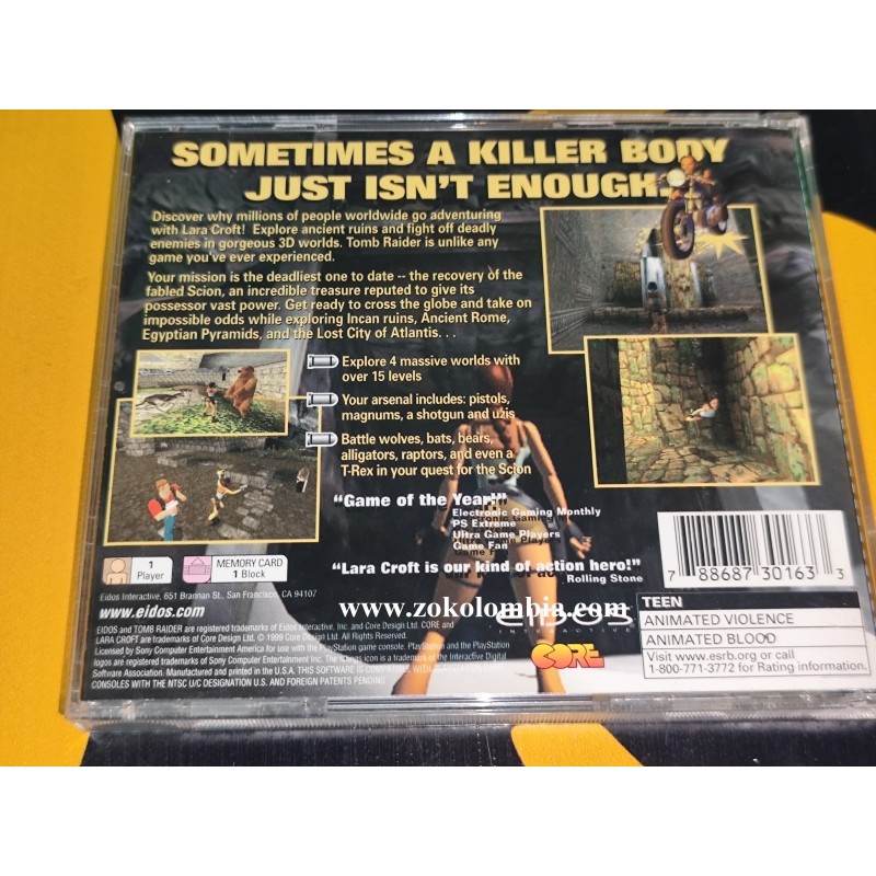 ¡Explora, combate y descubre los secretos del pasado con Lara Croft en el Tomb Raider original! Solo en Zokolombia, ¡la historia de los videojuegos vive aquí!