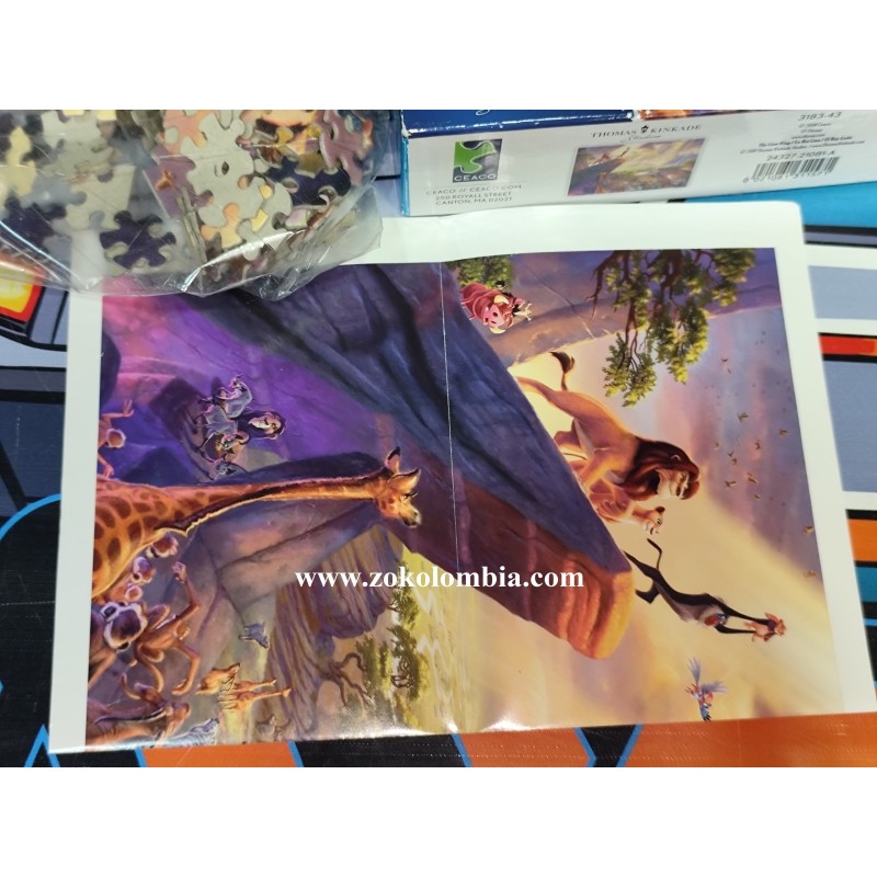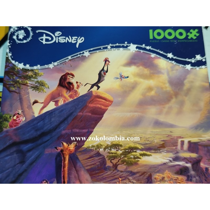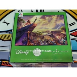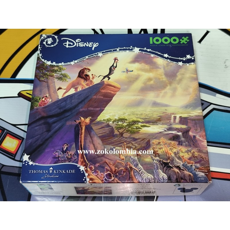 Revive la magia de El Rey León con este espectacular rompecabezas de 1000 piezas, ilustrado por el reconocido estudio artístico Thomas Kinkade Studios. Una pieza coleccionable con un vibrante diseño del icónico momento en la Roca del Rey, protagonizado por Mufasa, Simba, Rafiki, Timón, Pumba y toda la sabana africana.