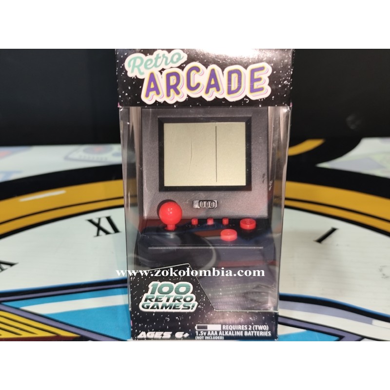 Esta mini arcade portátil ofrece una experiencia clásica con pantalla integrada en tonos monocromáticos, botones de acción y un joystick tipo bolita. Solo requiere 2 baterías AAA y está lista para jugar en cualquier lugar.