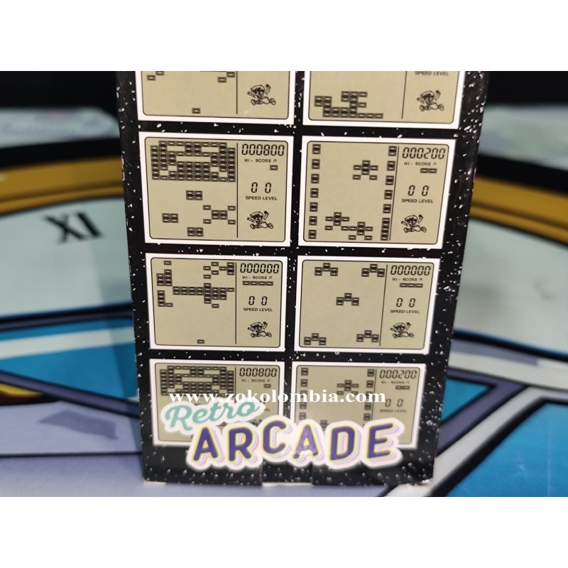 Empaque original tipo blister con diseño “Retro Arcade”.