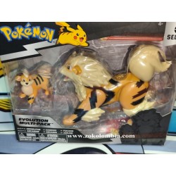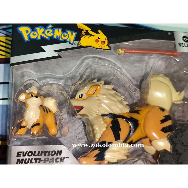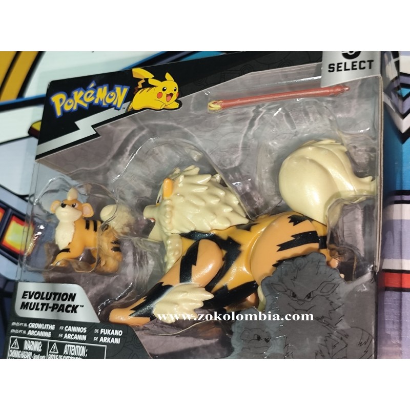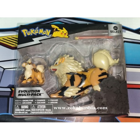 Presentamos el Evolution Multi-Pack de la línea Pokémon Select, un set especial que incluye a Growlithe y su evolución Arcanine, dos de los Pokémon tipo Fuego más queridos de la primera generación.