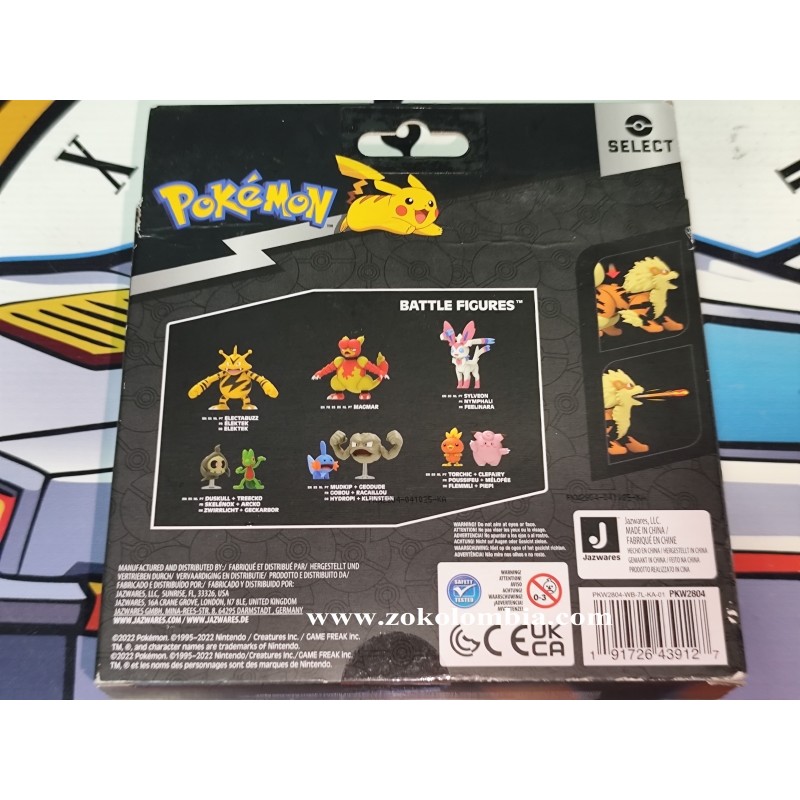 Las figuras vienen en su empaque original, tipo blister, ideal para coleccionistas y fans de Pokémon.