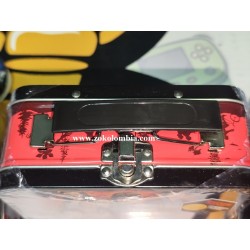 La lonchera tiene cierre metálico tipo lonchera pequeña y asa plegable, lo que permite usarla después como contenedor, decoración, almacenamiento o pieza de colección.
