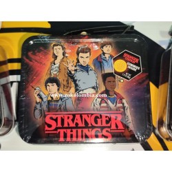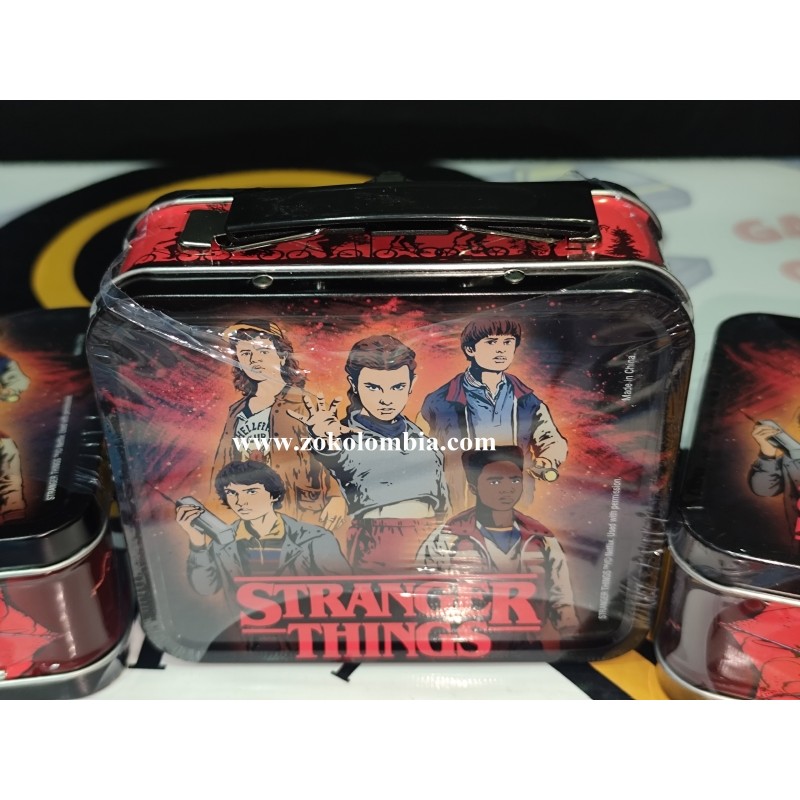 Te presentamos esta espectacular lonchera metálica coleccionable de Stranger Things, un producto oficial con arte exclusivo basado en los personajes principales de la serie.