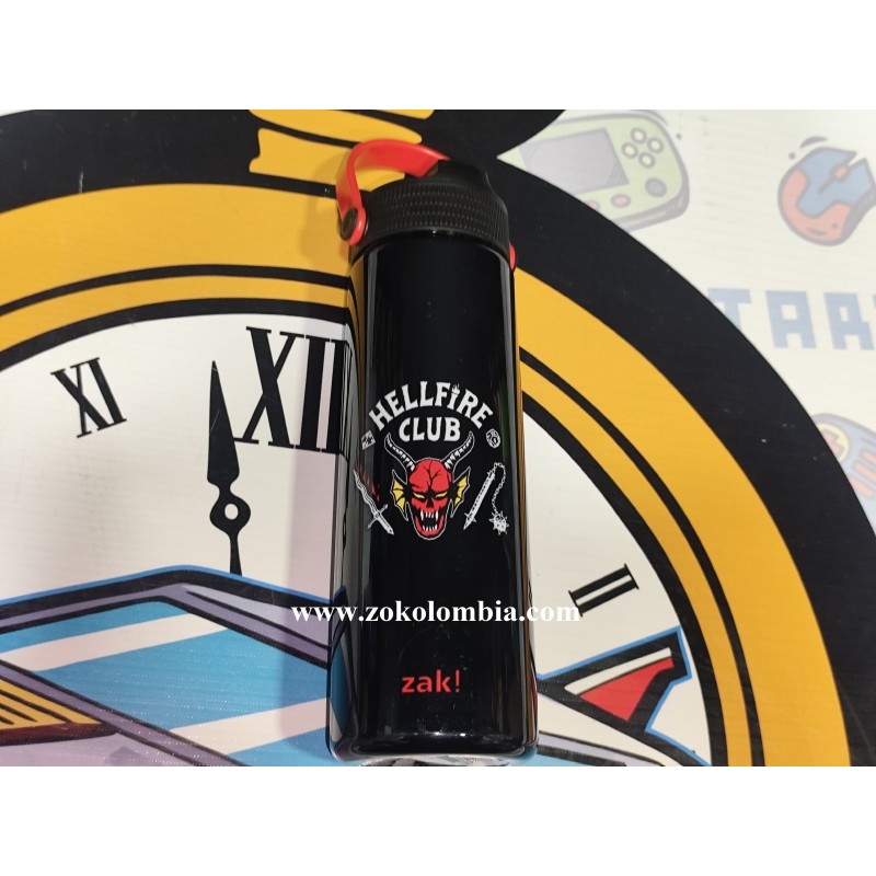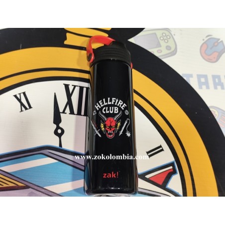 Te presentamos la botella o recipiente oficial de Stranger Things inspirada en el icónico Hellfire Club, fabricada por la reconocida marca Zak!.