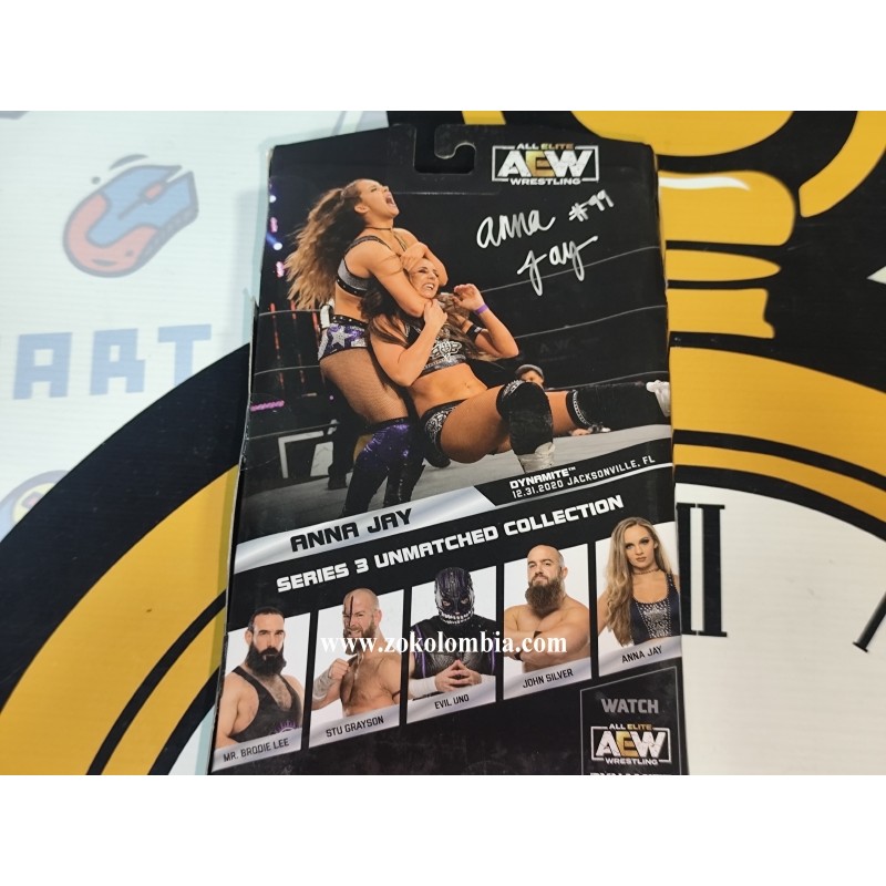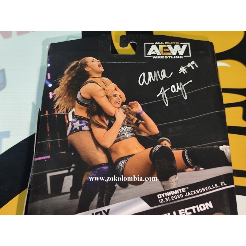El empaque incluye una foto de Anna Jay durante una de sus presentaciones en AEW Dynamite (31 de diciembre de 2020, Jacksonville, FL), lo que hace de esta figura una pieza llena de historia para los fans.